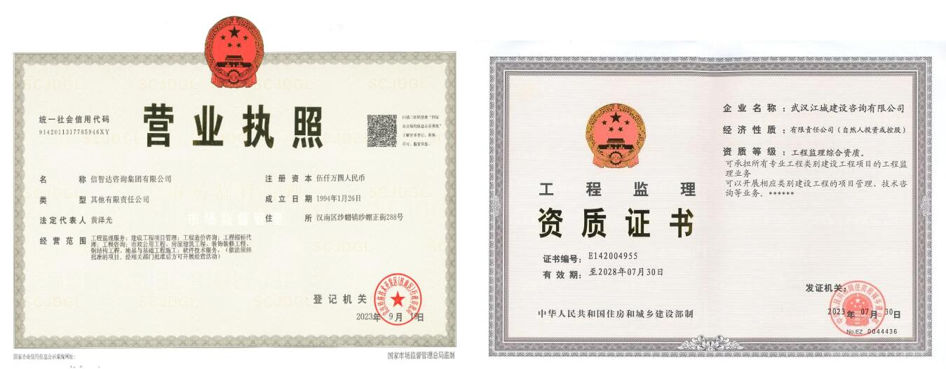 2023年7月, 武漢江城建設(shè)咨詢有限公司(以下簡稱“武漢江城”)取得工程監(jiān)理綜合級資質(zhì)。