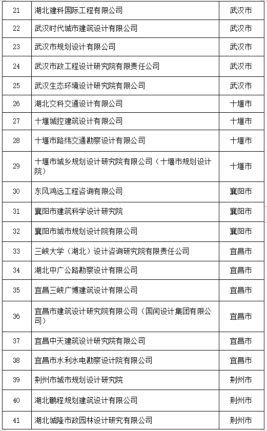 湖北省工程設(shè)計和施工雙資質(zhì)重點培育企業(yè)名單